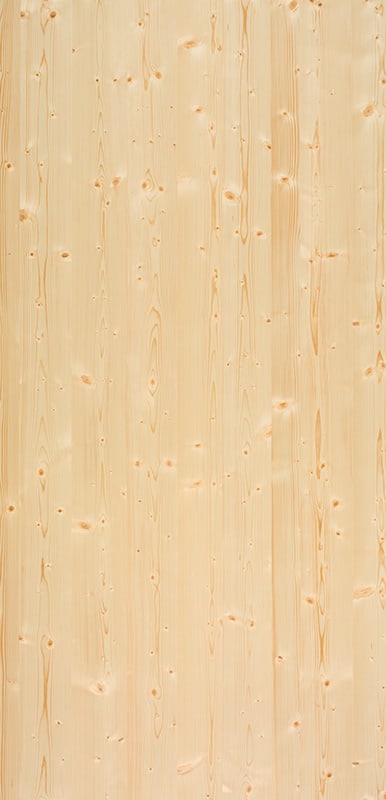 A Nørdus panel is composed of a top layer of real wood veneer, a core of 18 mm MDF and a backing of real wood veneer for stability reasons. The top layer is always a jointed veneer sheet in accordance with the chosen design, composed using our mix match technique. In this process, strips of veneer wood from various trees with varying cutting methods are randomly jointed into a full sheet. This way, the panel looks like solid wood. By creating a continuous surface with various panels, there is no optical interruption. The Nørdus products are always delivered unfinished and should yet be treated by the processor.
